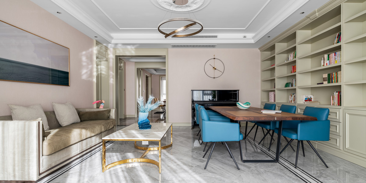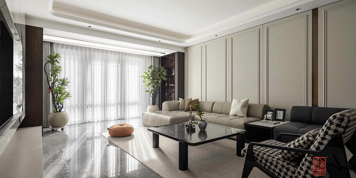 客廳采用磁吸軌道無主燈設(shè)計+定制燈帶,以舒適合理的線條,引領(lǐng)室內(nèi)氛圍光,拉伸層高,擴充格局,讓業(yè)主真正感受私人訂制設(shè)計之美。